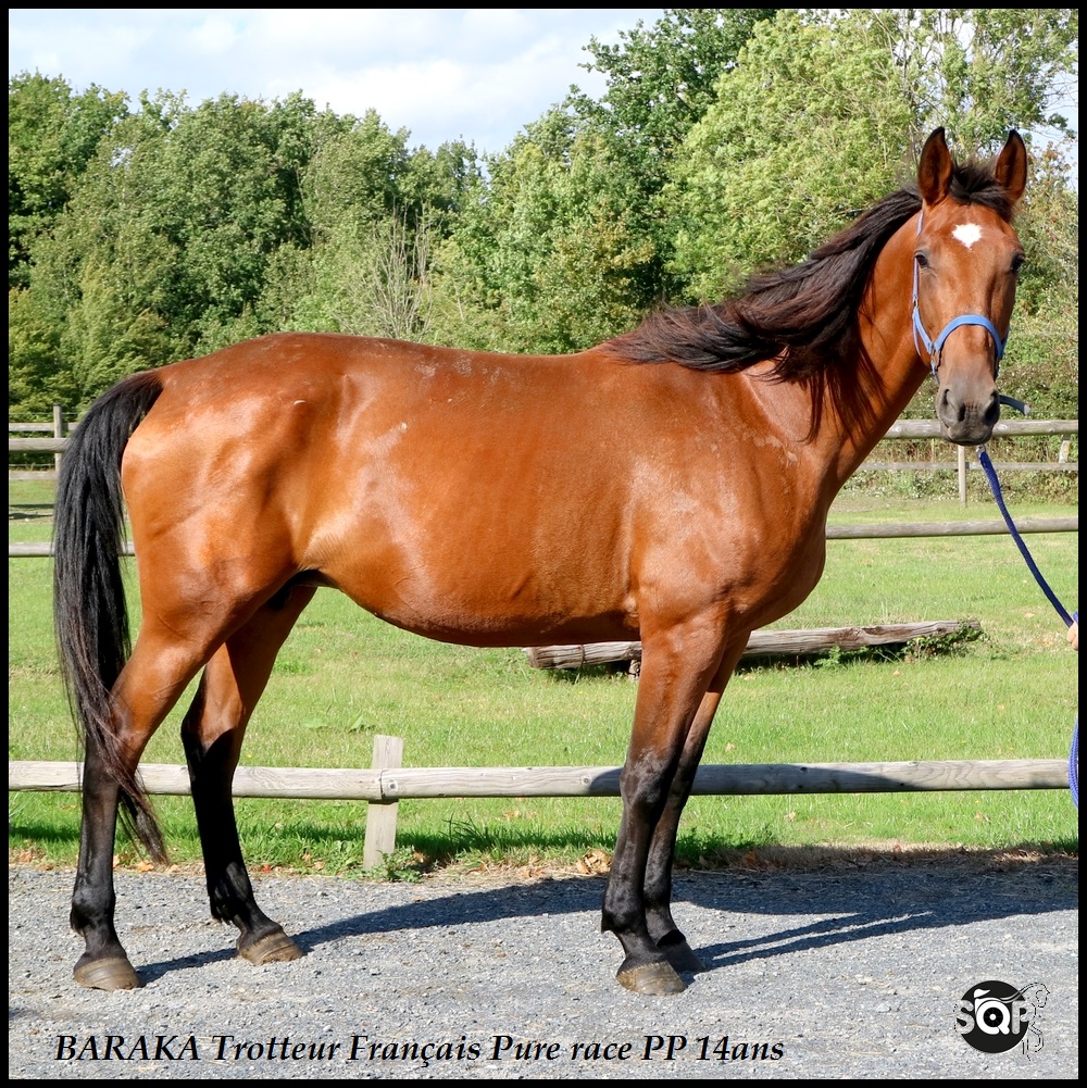 Une sacré jument mature avec du cadre qui a déjà eue deux vies. Elle est vraiment idéale pour qui voudra sans stress ni prétention une jument d’extérieur !. D’une grande gentillesse et d’un calme olympien, elle va devenir votre coup de cœur et vous aidera a grandir a ces cotés. Elle est super aussi pour éduquer et rassurer… équidés et gardiens !!!!!!!!!! Qui aura la baraka ?