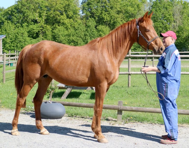 Une belle vie pour cette amour de maman et de super tata – Une douce jument sage et amitieuse – A toujours été dans une famille respectueuse – De caractère froid et passe partout – Tout lui va – Chacun a sa place au paddock – Pourrais éduquer des jeunes et tenir compagnie a des vieux – Jument extrêmement bien faite – Une encolure épaisse et ronde – Des allures volantes et ambleuses – Un zamouurrrr de jument – Une belle alezane rubican avec du crins et de bons pieds – Voyage très très bien – Hyper facile a manipuler – La nièce de l’éleveuse s’en occupait du haut des ces 7ans – Un atout de coeur pour votre douce famille