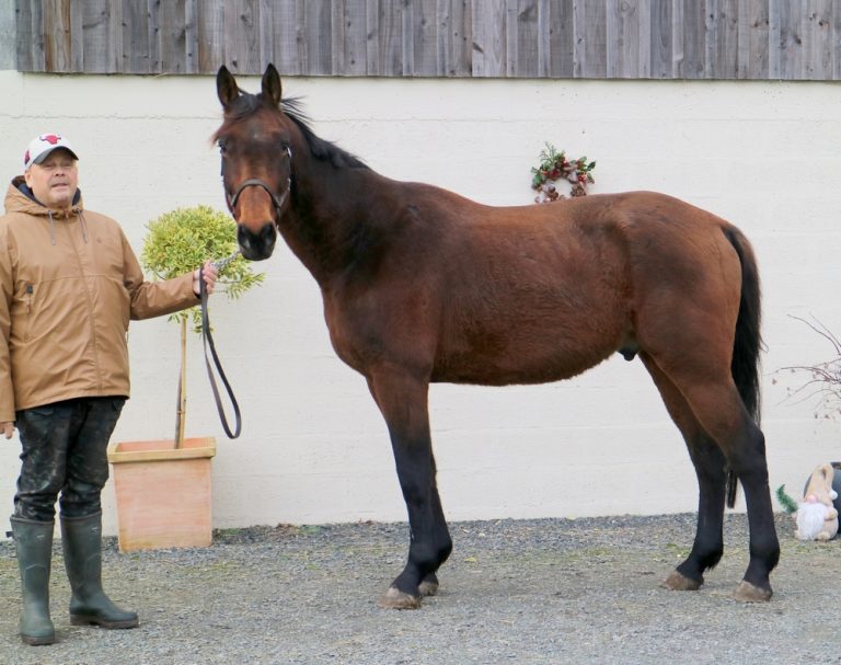 Mais quel beau cheval bai qui porte bien son nom car il en impose par sa gentillesse et son modèle trapu et super porteur. Il est adorable monté, et se prêtera de suite à de la balade et des randonnées.