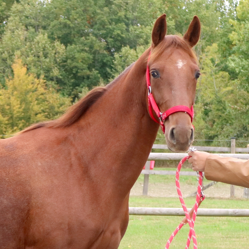 Quelle splendeur – Une superbe adolescente qui brille de 1000 feux et d’un alezan foncé – Bien faite avec une jolie ossature et une arrière main qui fais rêver – Bons aplombs et bonnes jambes – Volontaire – Franche et dynamique – Hyper bien éduquée – Mature dans sa tête et dans son travail – Continuez a travailler dans le confort et la complicité – Si vous rêvez de horse ball de Trec et de ballade passe partout Foncez pour cette jolie beauté flamboyante et rayonnante !!!!! – elle a tout pour elle et viens d’un bel élevage cela se voit ![]()