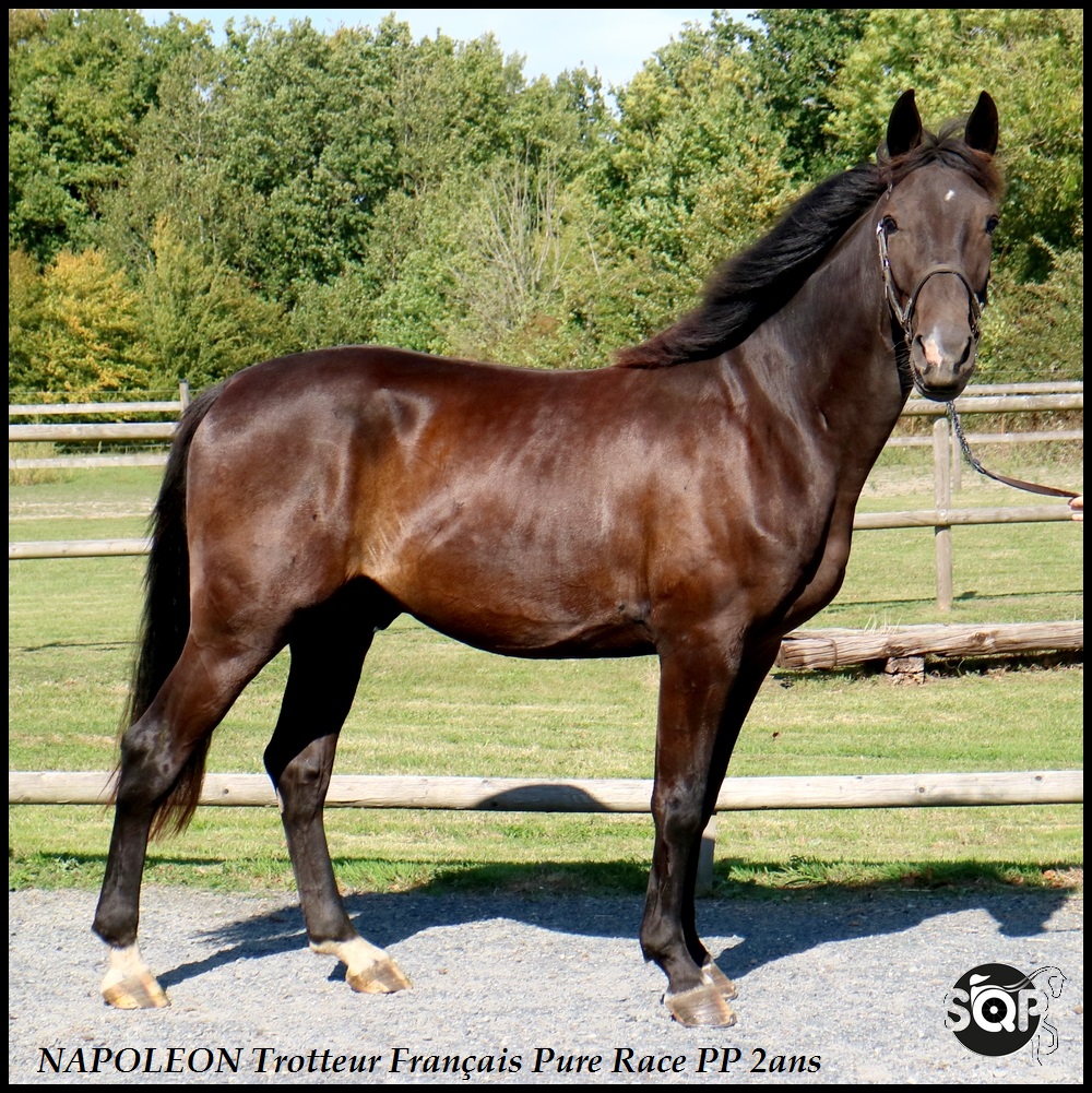 Un jeune trotteur extrêmement bien élevé – D’un calme olympien – D’une sagesse extrême et d’une sérénité a toute épreuve – encore un peu bébé mais froid et apaisé -Sera idéal pour un cheval compagnon d’extérieur et de randonnée – Très cossu – Porteur et rustique – Belle ossature et bons pieds – Un gros « GGG » qui sera toujours dans la sagesse et la complaisance – Pas sportif du tout – Plutôt famille et confort de quiétude – Un bel adolescent noir avec de beaux ronds de santé et un joli physique – Choisissez le pour devenir vote ami de balade et de route – Encore un peu de patience pour qu’il soit prêt physiquement car il a encore de beaux points de force à développer – Bravo NAPOLEON pour ta sagesse !!!!!!!!!!!!!