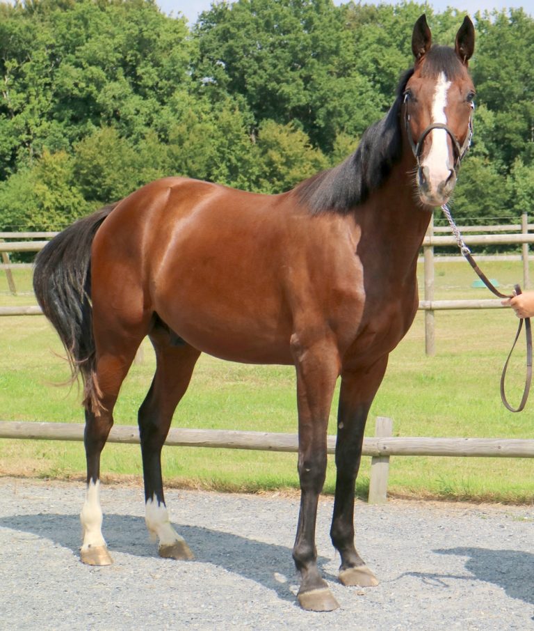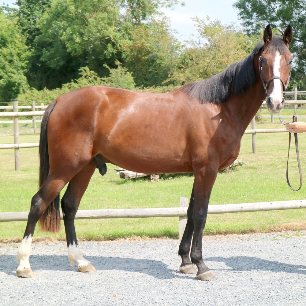 Il peut bien sur faire du sport, du CCE et du trec sans souci car il est sain et net, mais une vie en extérieure serait idéale. Il fera environ 172cm avec vraiment une belle arrière main. D’une solidité à toute épreuve avec du chic et de la beauté d’équilibre physique. Une superbe tête avec une belle crinière et un bai brillant cerise.
