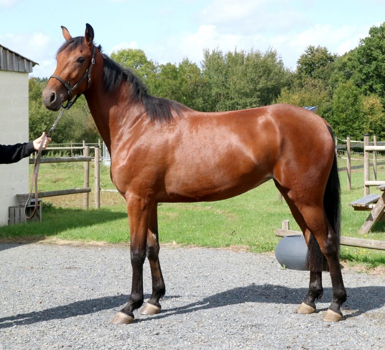 D’une belle maturité – Très jolie pouliche avec un physique de sauteuse – Déjà sage bonne élève – Jamais courue – Très bien travaillée et débourrée – Une belle conformation physique avec du muscle et de la puissance – Bien carrossée et déjà un poitrail ouvert et de belles jambes – Son physique est parfait pour une jeune adolescente – Faites en une jument multidiscpline – Pas regardante – Proche des hommes et respectueuse – Belle recrue pour amateur de jument de type selle avec du dos, de l’os et de la volonté ! 4 pieds noirs et une encolure courte – Feu les podiums !