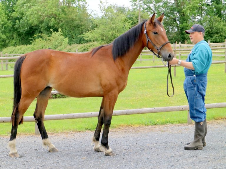 Elle a 4 balzanes et pieds blancs, une superbe ligne de dos et énormément de chic. Beaucoup de passage, cela va être facile pour elle d’enchaîner les épreuves de dressage et de saut. Peut être une future jument de complet.