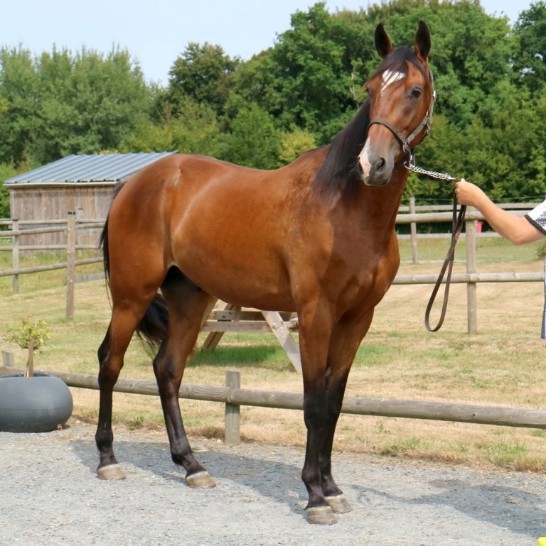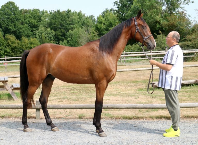 Physiquement il est impressionnant et sera de très très belle taille. Il a de beaux pieds et une super jolie tête avec un œil blanc très inspirant. Il est d’une élégance incroyable a même pas 3ans …ca promet !!!!