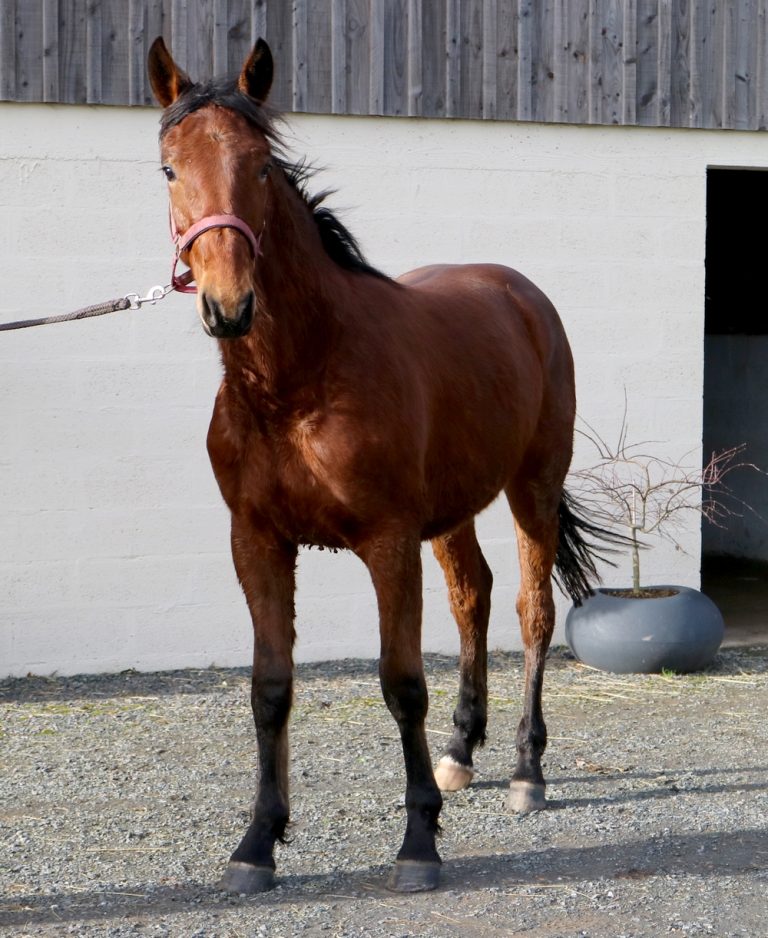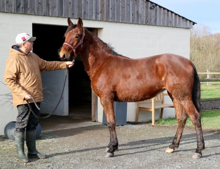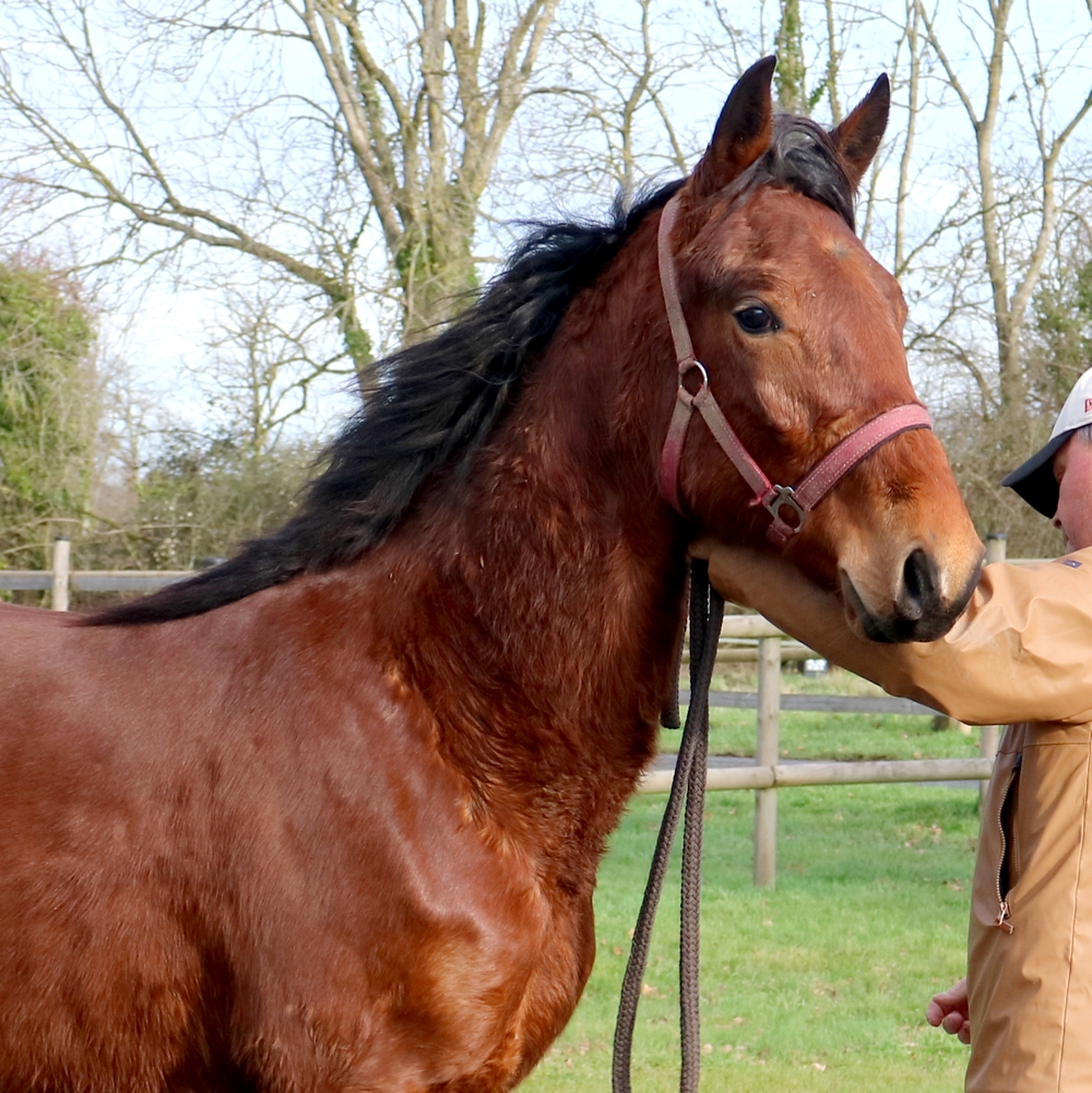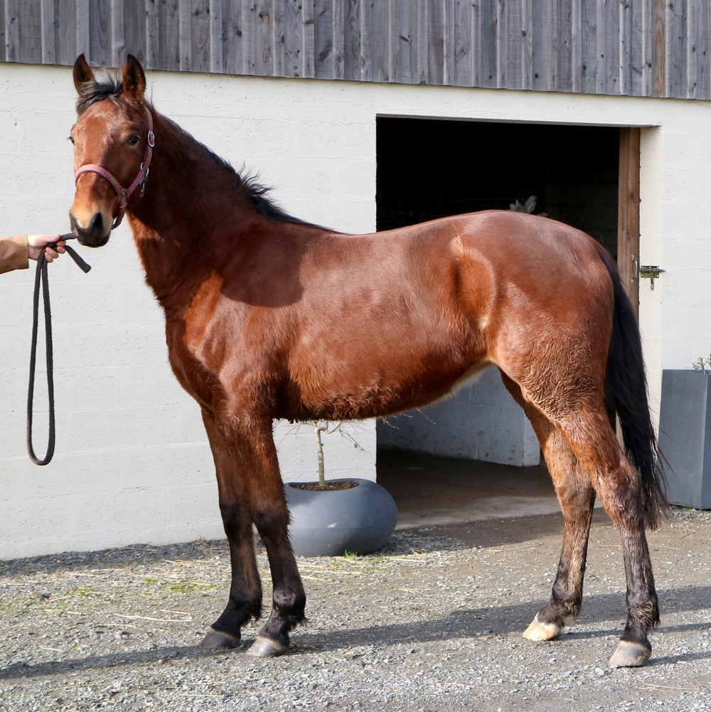 Mais quelle magnifique petite adolescente pleine de bonne humeur et de joie – A été élevée et entraînée au même haras – Première sortie chez nous pour sa réforme – Extrêmement belle d’état – Elle galope sans contrainte et se voit donc réformée – Pas du tout trotteuse – Bien membrée et avec une sacré encolure – déjà osseuse et avec du cadre – Sera une superbe jument de sport – A préparer – Bien éduquée – Va a la douche – Voyage bien – Connais maréchale et couverture – Vit au champ a l’année – Continuer a cultiver cette belle intelligence et cette volonté d’être une jument de l’avant – Sans peur ni reproche – Bien dans ces basquettes _ Un vrai bonheur et une grande joie pour cette jolie potelée – Saine et nette –