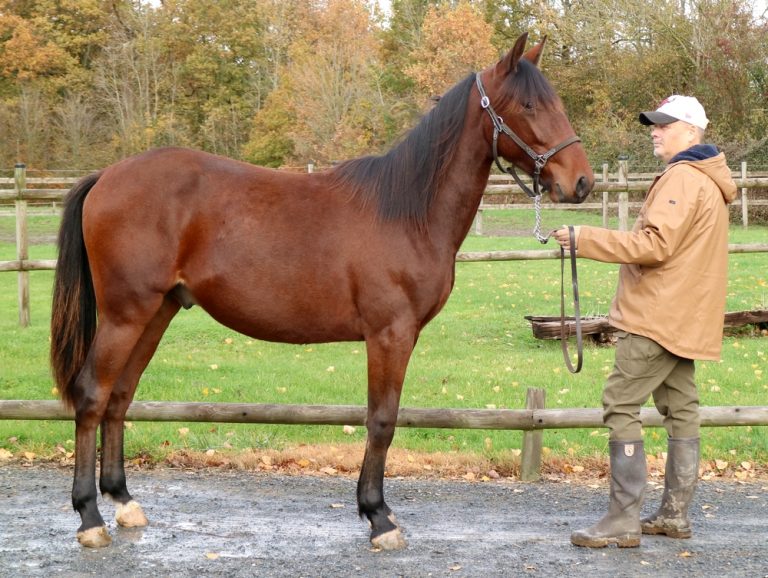 Il a un joli physique avec un dos court, de bons pieds et des yeux d’une douceur incroyable. Il va encore changer avec la croissance et sera un beau cheval d’extérieure , de randonnée et de balade.